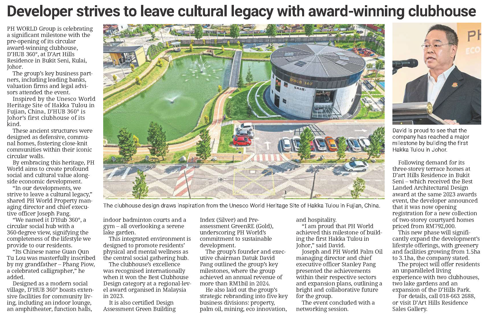In the news! Our Hakka Tulou-inspired clubhouse, D’HUB 360°, is featured in The Star. It’s Johor’s first, designed to build a lasting cultural legacy and a vibrant community.